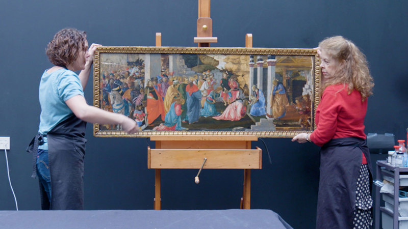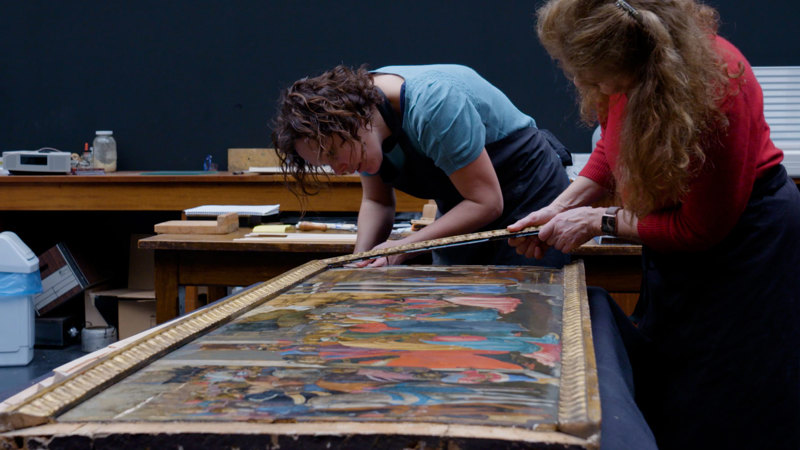 It was now possible to see more of the composition of the painting, including details such as the rocks and architecture.