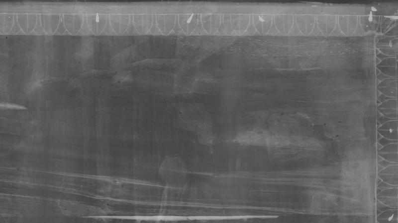 X-ray images of the painting indicated that the frame was covering original paint, as you can see in this example.