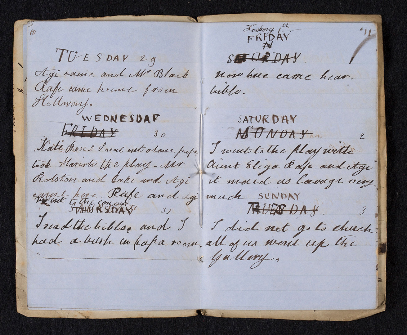 Numerous items which belonged to the Wornum family are in the Gallery’s archive. This even includes a lock of one of the children’s hair and two diaries kept by one of Wornum’s daughters, Elizabeth Helen. In 1861, when she was 13 years old, she wrote: “I did not go to church, all of us went up to the Gallery.”