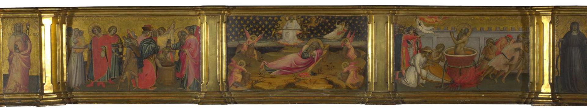 The narratives were not always arranged in chronological order. Sometimes the most significant scene was placed at the centre. Predellas also sometimes consist of a series of individually framed saints.