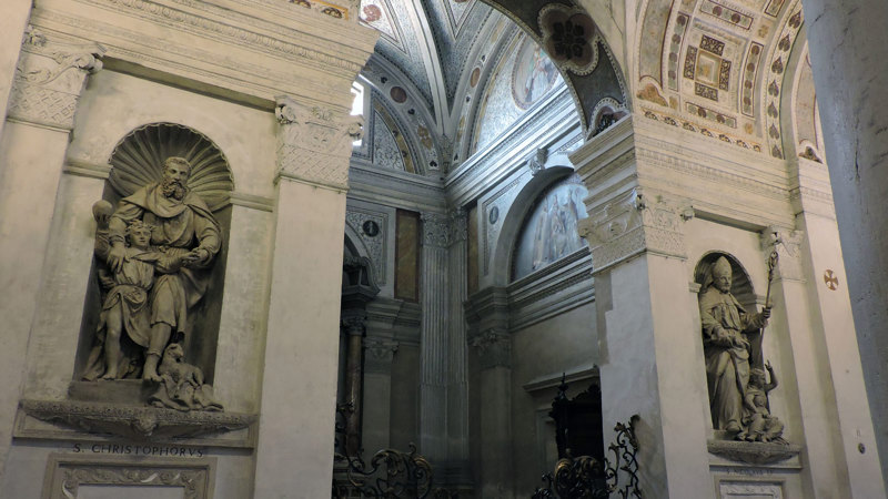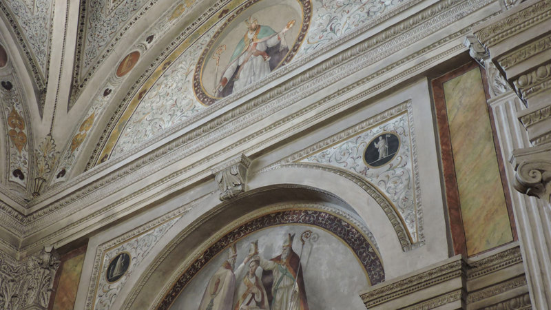 The church of San Benedetto al Po was part of a monastery belonging to the Benedictines of the Cassinese Congregation (a reformed wing of the Benedictine Order). By the 16th century, it was one of the largest and most important Benedictine monasteries in Europe, and attracted some of the greatest religious minds and artists of the period. In 1540-47, the church was substantially enlarged and given a Renaissance facelift by Giulio Romano, the innovative painter and architect, and Raphael’s prime pupil. It was during this time that the chapel of Saint Nicholas was built, one of a suite of new side chapels located on the south side of the church. The chapel was also decorated with frescoes depicting the life of Saint Nicholas, again designed by Giulio Romano and executed by his workshop. Then, some 20 years later, Paolo Veronese was commissioned by Don Andrea Asola, the abbot of San Benedetto al Po, to paint the altarpiece for the chapel.