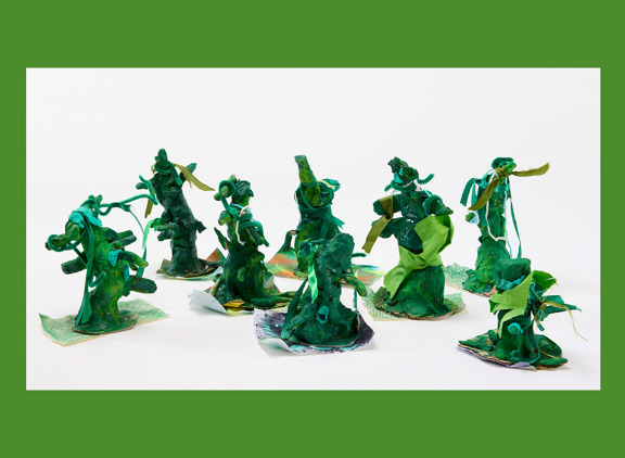 We wanted people to think about what they might see looking through layers of leaves and grass. This inspired our Modroc sculptures. We practised mixing and naming different shades of green before collecting sticks and leaves to help us make accurate sculptures.