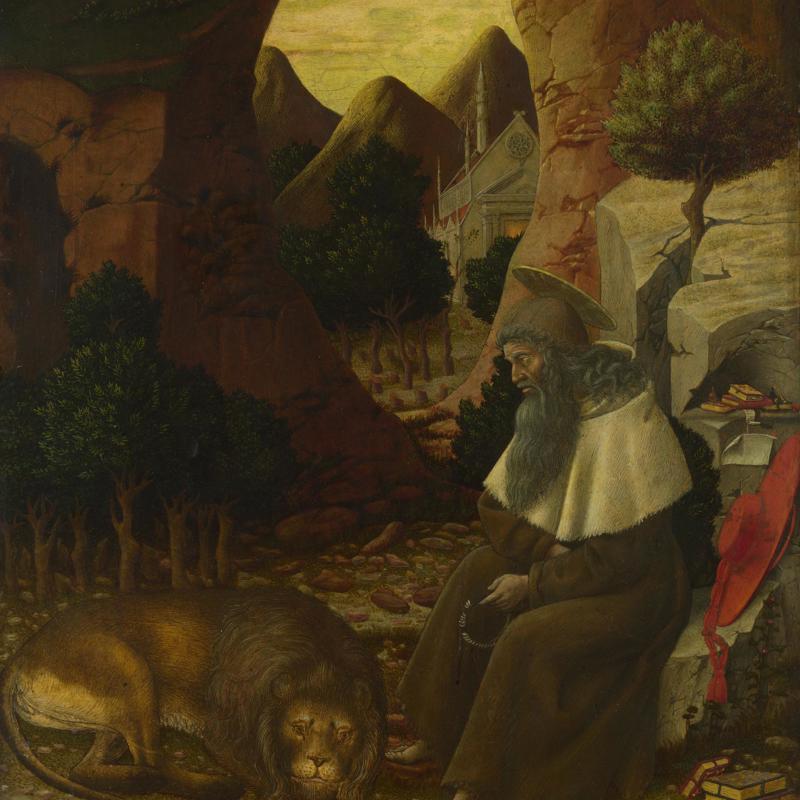 Saint Jerome is reputed to have removed a thorn from a lion’s paw while living as a hermit in the desert.