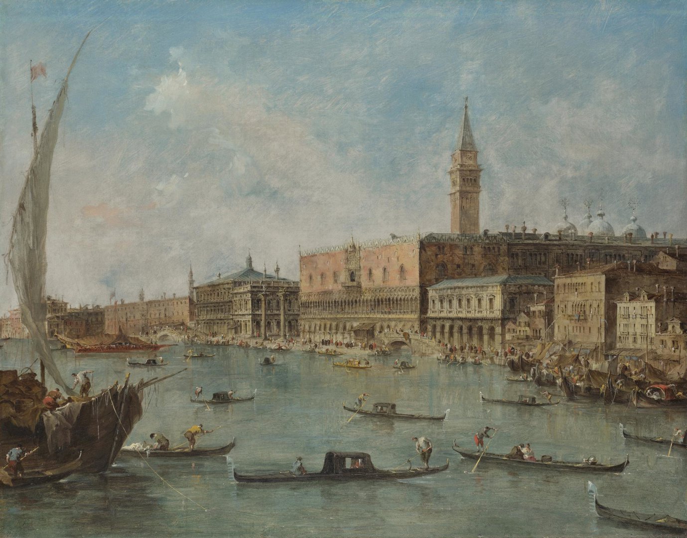This is perhaps why ‘The Doge's Palace and the Molo from the Basin of San Marco’ by Francesco Guardi appeals to me. It depicts Venice from the point of view of the people who live there, going about their daily routines and making a living from the waters of the lagoon on which the city is built.