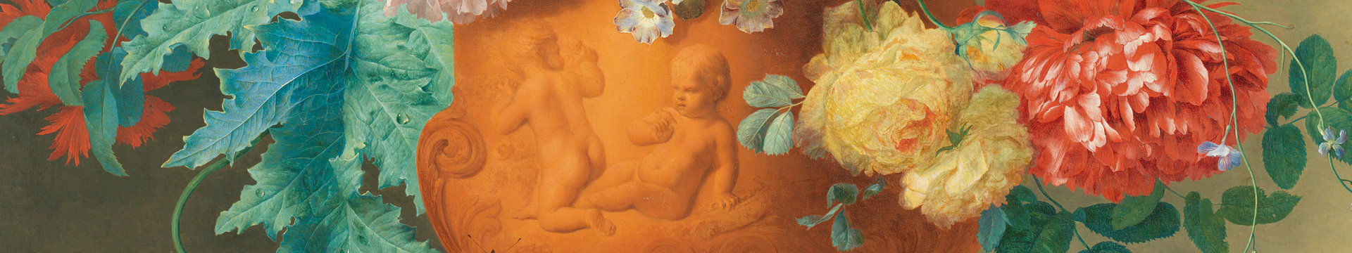 Van Huysum includes several butterflies, attracted by the flowers' pungent scent. Only a 'real' flower would attract an insect, or so Van Huysum would have us believe...