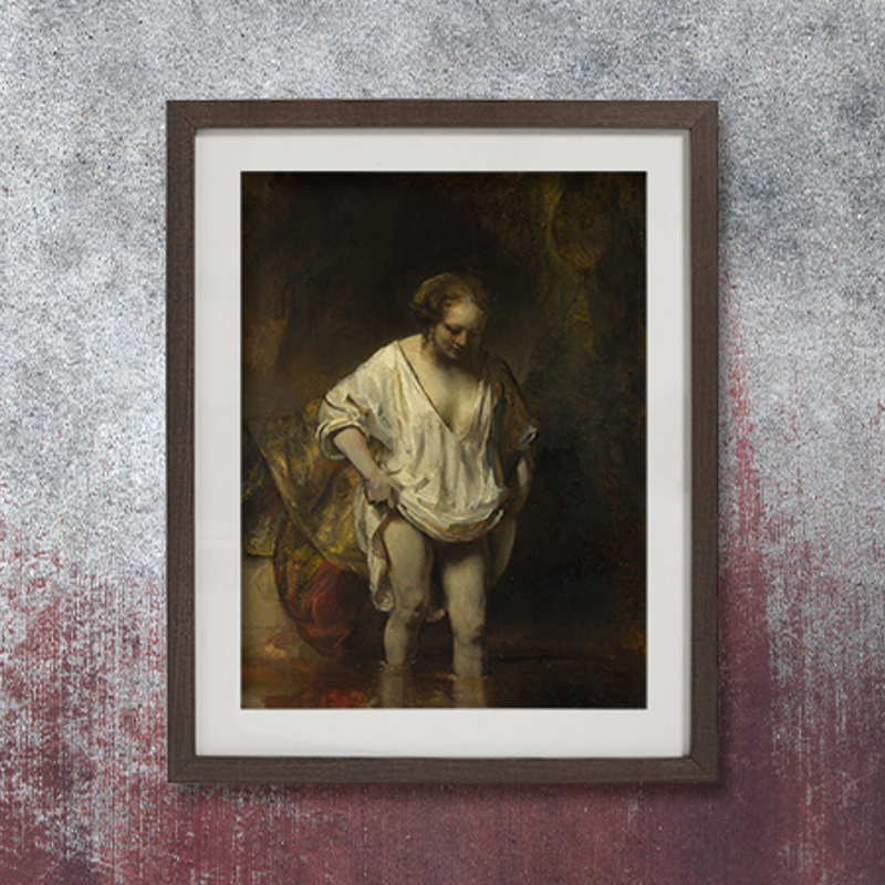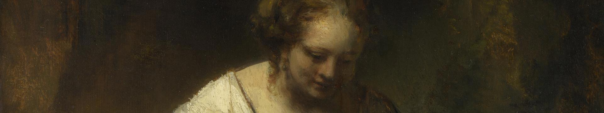 We think that the woman bathing is Hendrickje Stoffels, a young women of 28 who moved into Rembrandt's household on the death of his wife Saskia to look after his baby son, Titus.