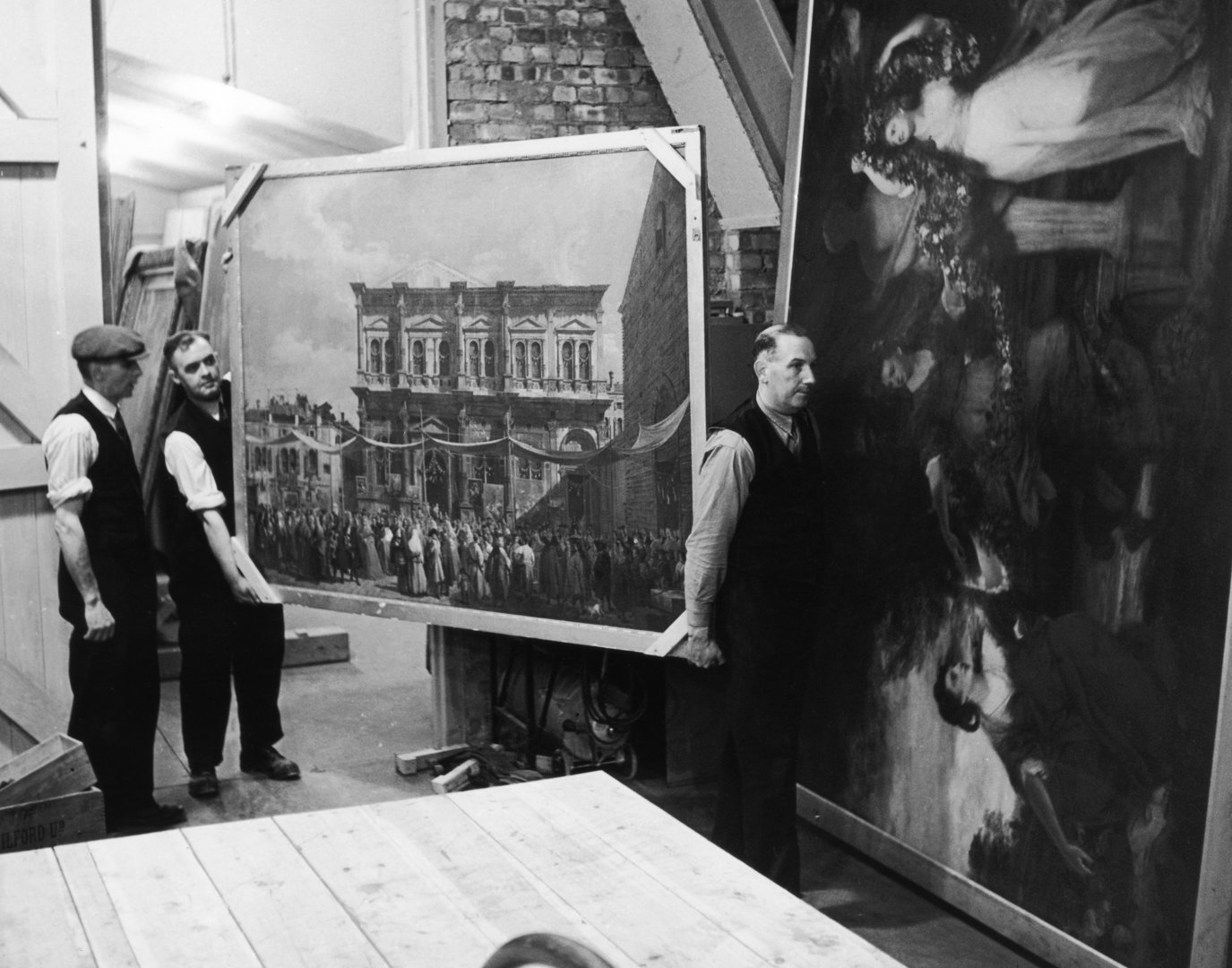 The works were transported along the winding roads and little bridges, into North Wales. Canaletto's 'The Stonemason's Yard' was one of the paintings stored in Manod.