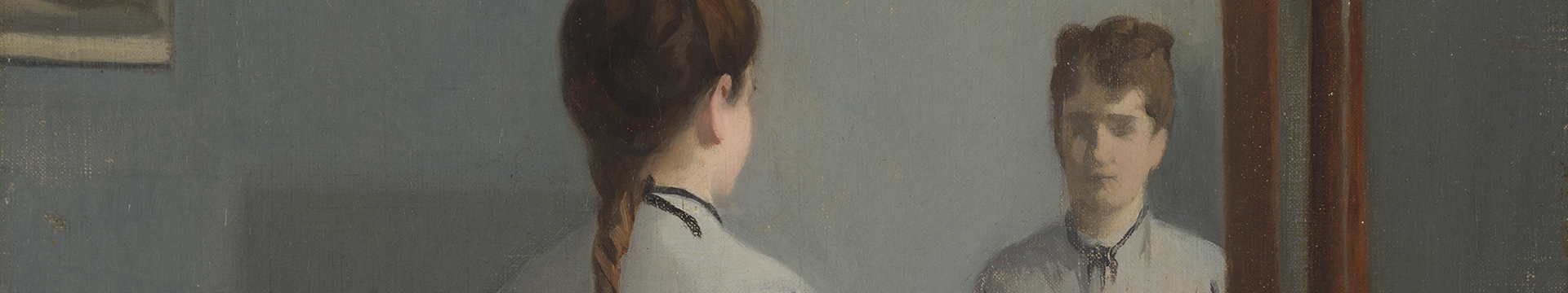 Join Sarah as she looks at Impressionist painter Eva Gonzalès's painting 'The Full-length Mirror', the first work of art by the artist to enter our collection. Using her artist sister as a model, Gonzalès's painting may be part of a long tradition of artists including Diego Velázquez and Berthe Morisot painting young women looking into mirrors, but Herring shows us the ways in which Gonzalès's scene is more nuanced. Find out what this less conventional interpretation tells us about the artist and her time.