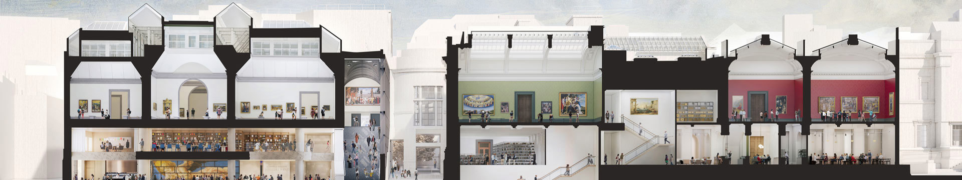 The historic Wilkins Building now includes a new Supporters House with dedicated spaces for our Supporters and Members, as well as a new Research Centre that's still to come for everyone interested in studying art, from young people to international academics.