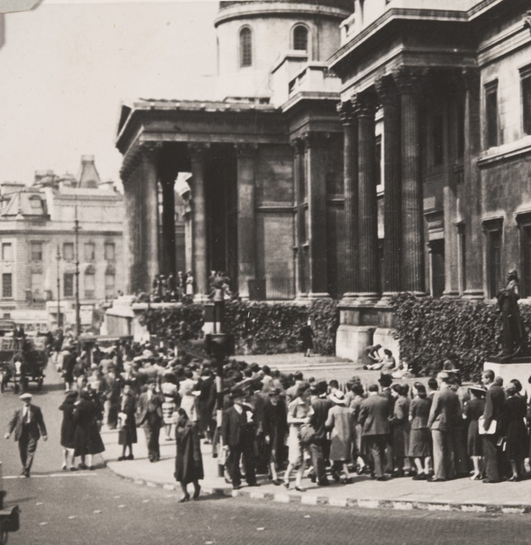At Trafalgar Square, the opportunity was seized to open the National Gallery for various cultural pursuits which might raise public morale. Visitors were able to attend temporary wartime exhibitions as well as the groundbreaking lunchtime concerts pioneered by Myra Hess.