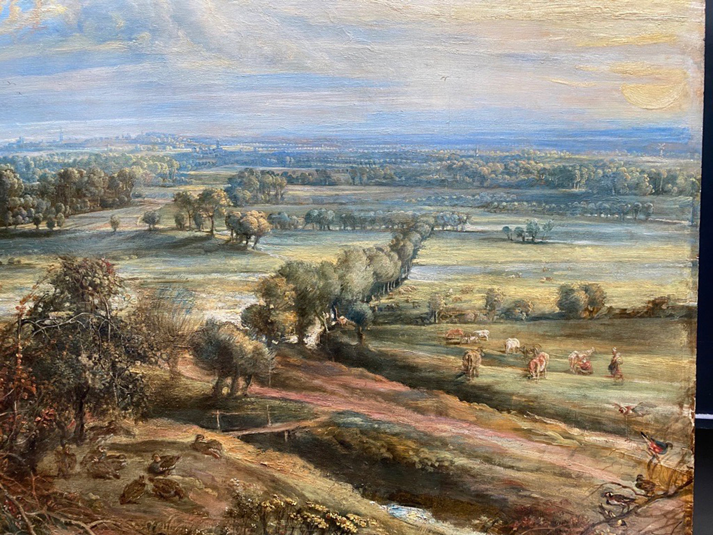 The conservation work and related research has also helped inform our understanding of how Rubens developed these two landscape paintings together, to be viewed alongside one another. It is thought that the paintings once hung on opposite walls of the same room. The wall in between had a window, and the paintings were probably positioned so that the sunlight pouring into the room matched that depicted in each work. In these paintings, Rubens celebrates what he treasured most: his own success, perhaps, but also the prosperity and peace of Flanders, his native land.