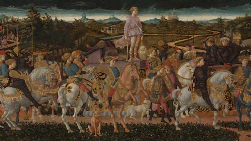 The National Gallery is uniquely placed to introduce Pesellino’s work to a broader audience given the presence in its collection of two of his undisputed masterpieces; two cassone (chest) panels depicting the Story of David, about 1453‒5, and the magnificent Pistoia Santa Trinità Altarpiece, 1455‒60.