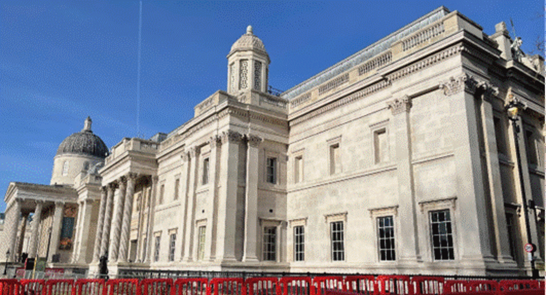 Over the last three years the external façade overlooking Trafalgar Square has undergone a phased major clean and refurbishment programme, made possible by the generous support from the late Julia Rausing and her husband Hans Rausing. The philanthropic couple offered to help the Gallery mark its Bicentenary this year. With the final scaffolding down, the stone looks as fresh and clean as it did when the young National Gallery formally opened to the public in 1838.