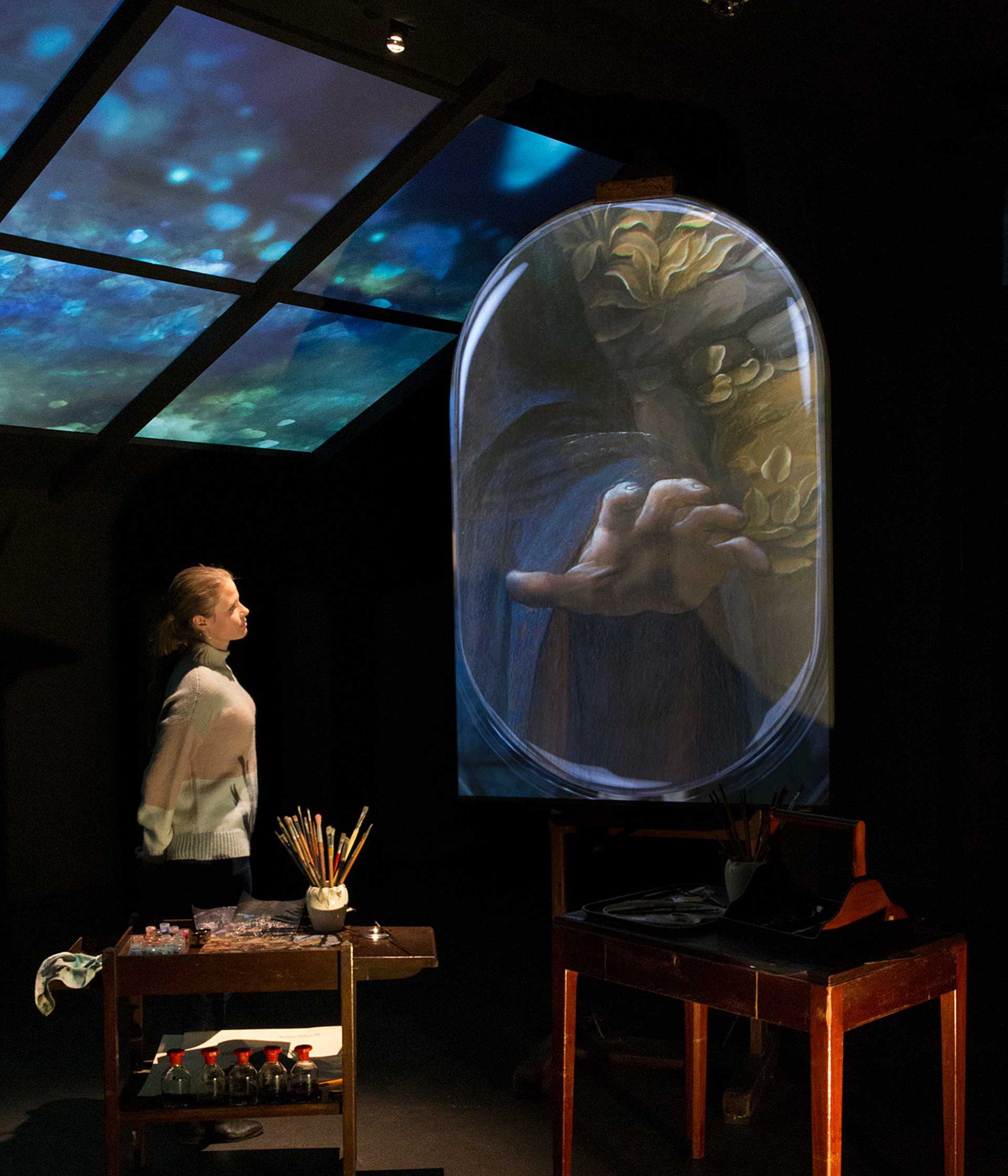 The ground floor galleries have been completely transformed into a space that investigates 'The Virgin of the Rocks' and the inventive mind that created it. A wide range of multi-sensory experiences are presented across four separate rooms. Visitors are able to step inside a similar chapel-setting and see what art historical research suggests the painting’s setting may have looked like. They can explore Leonardo’s own research, which informed the specific compositions in the painting. In addition they can see how Leonardo used his scientific studies to create strong effects of light and shadow in his painting. The modern process of discovery in a conservation studio, where the mysteries and secrets of a painting are uncovered, are also brought to life with visitors being able to engage in detail with the latest findings underneath 'The Virgin of the Rocks'.