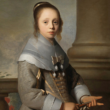 Although at first glance the style of the girl’s portrait may seem to accord with Luttichuys’s portraits of the mid-1650s, her dress suggests that the painting should in fact be dated earlier, around 1650. This is further substantiated by a signed pendant portrait of identical size of a boy in a dress that similarly dates from the later 1640s (present whereabouts unknown), who is almost certainly the little brother of our young girl: as late as 1834 the two paintings were still together in the same collection but they have since become separated.
