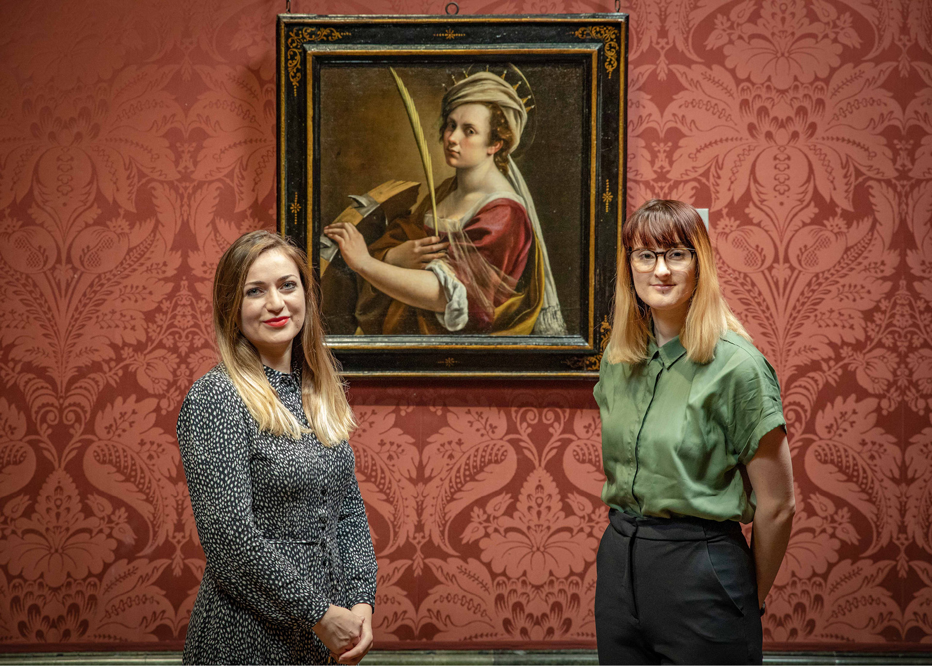 Image caption: Corinna Henderson and Jemma Craig in front of Artemisia Gentileschi’s 'Self Portrait as Saint Catherine of Alexandria', acquired with assistance from Art Fund, at the National Gallery in 2019 © The National Gallery, London