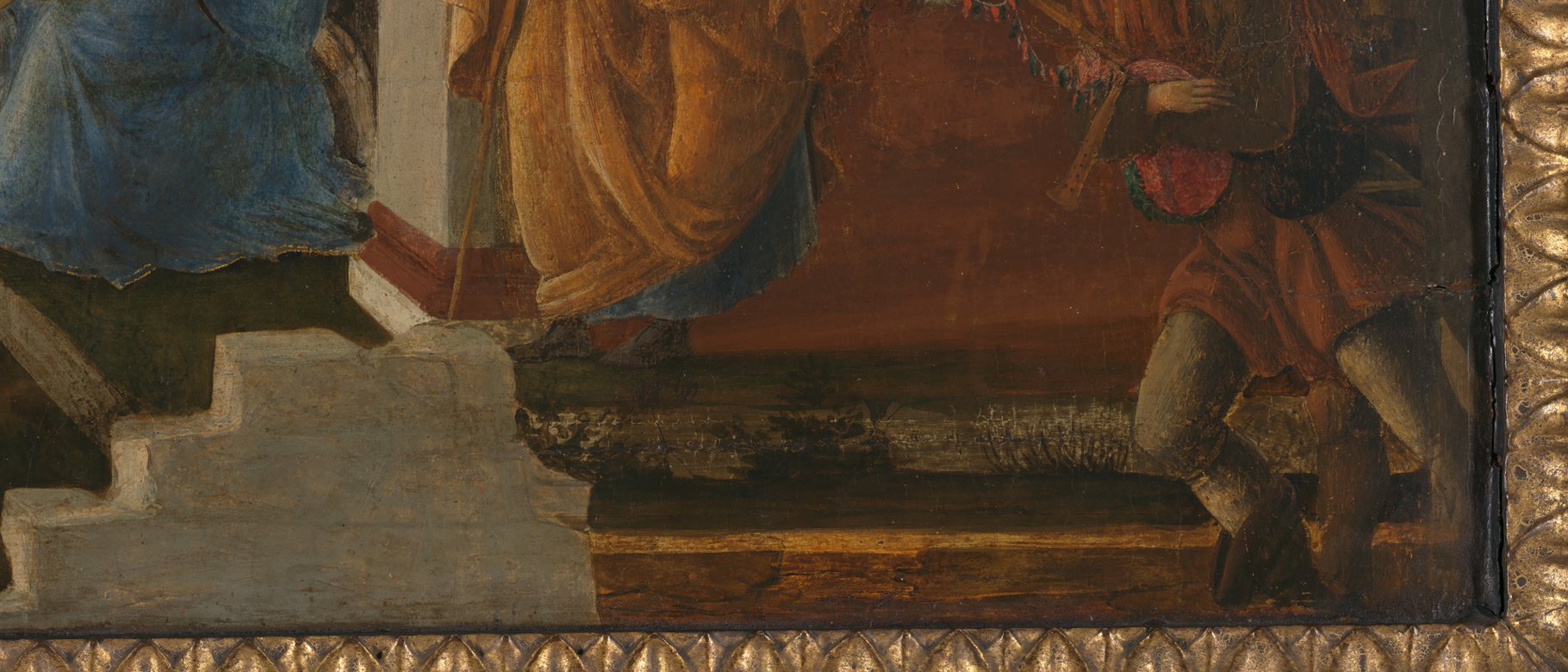 Although the painting dates back to about 1470, this frame had been added much later, by Florentine restorers in the mid 19th-century.