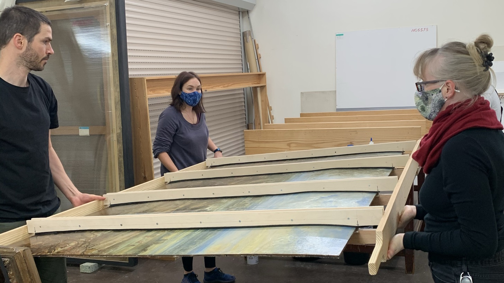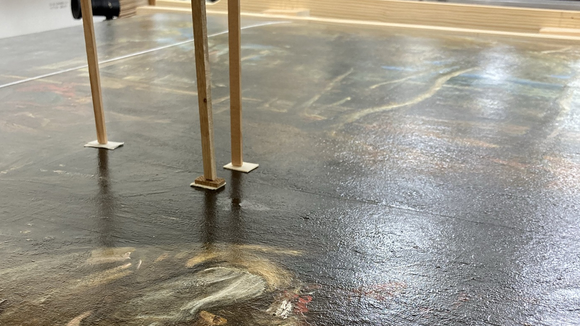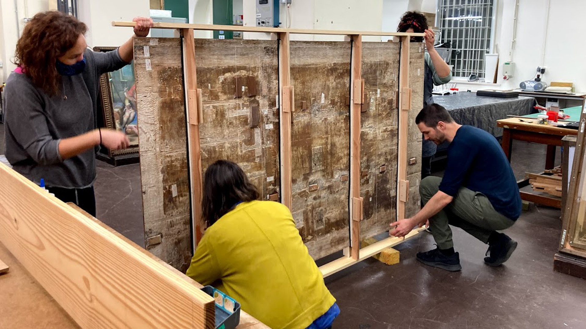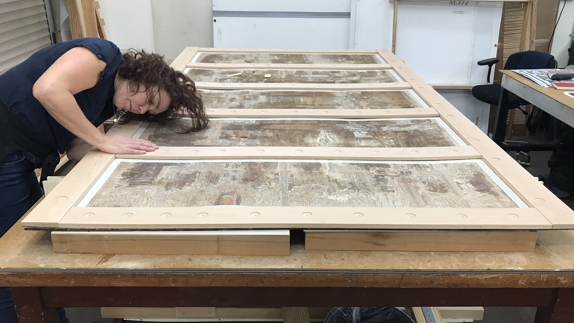 The reverse of the panel within the temporary support. Each time it was moved, four people were needed.