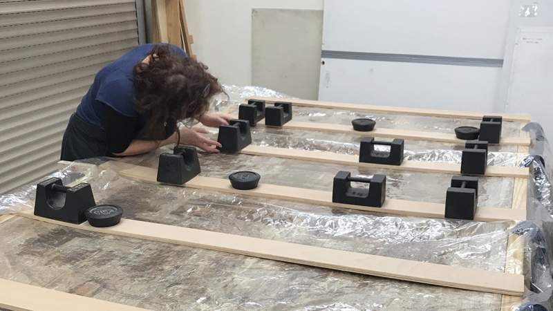 The team needed to be able to turn the panel so that they could see both of the surfaces and apply glue from both front and back.