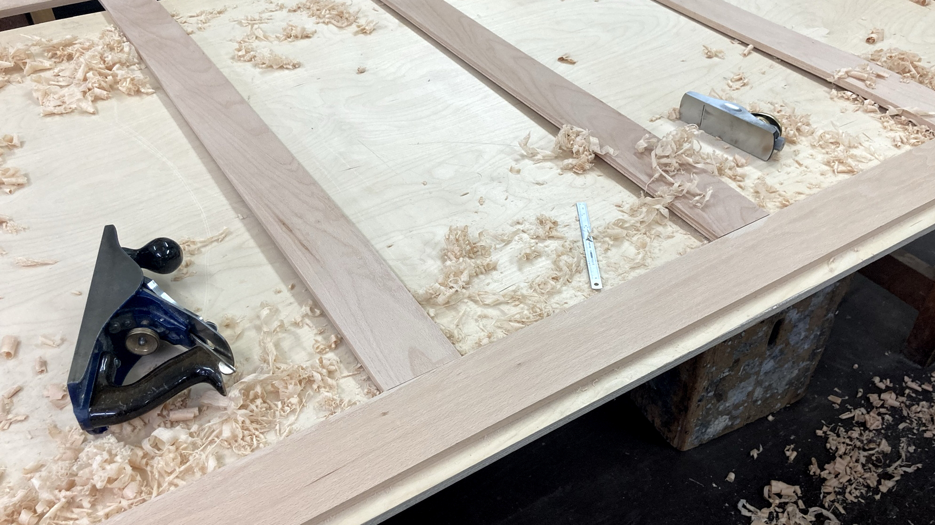 The battens were jointed to form a profiled strainer and then fit checked against the back of the panel.