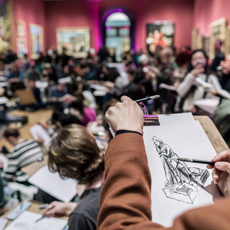 The Brighton-based arts company, led by Nikki Shaill, take over the Roden Centre for Creative Learning’s Social Space for a fun-filled evening of sketching. Capture costumed life models Arran Shurvinton and Francesca Cluney, whose dynamic poses take inspiration from both the mystical and monstrous in National Gallery’s Medieval masterpieces.