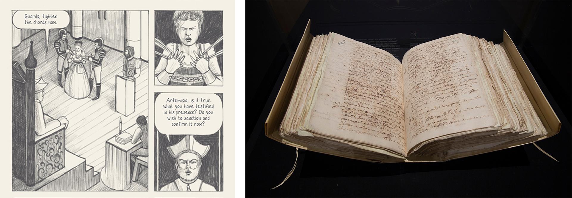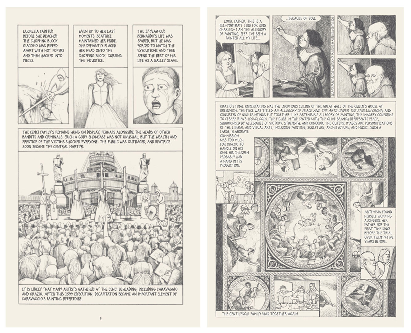 GS: I’ve been making comics forever, since I was a kid, so combining words and pictures feels like a completely natural expression. Artemisia’s story lends itself well to the format.