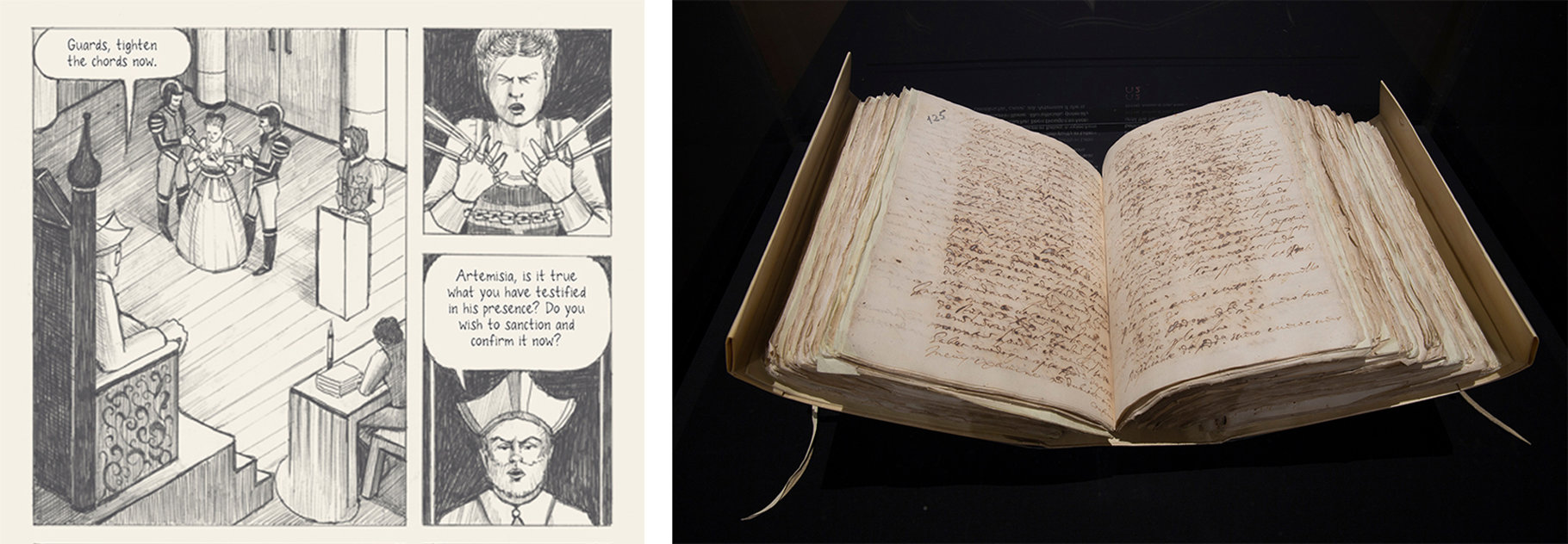 LT: As I discovered, working on the subject intensely over the past couple of years – first on the National Gallery’s acquisition of the 'Self Portrait as Saint Catherine of Alexandria' and then on the exhibition – there’s a lot of literature on Artemisia Gentileschi, but this is the first graphic novel. Why do you think that is? There’s obviously been a growing trend and interest in graphic novels on artists, such as Milo Minara’s on Caravaggio (2015) or Vanna Vinci’s on Frida Kahlo (2017).