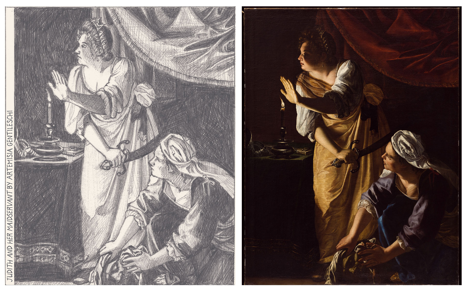 GS: I saw the Uffizi 'Judith beheading Holofernes' back in 2007 and last autumn I saw the earlier version of 1612. Before this painting travelled to the National Gallery for your show, it was here at the Seattle Art Museum, as part of an exhibition of important Italian paintings from the Museo e Real Bosco di Capodimonte in Naples (I participated in that exhibition and drew comics for it). Besides those two paintings, I’ve only seen reproductions.