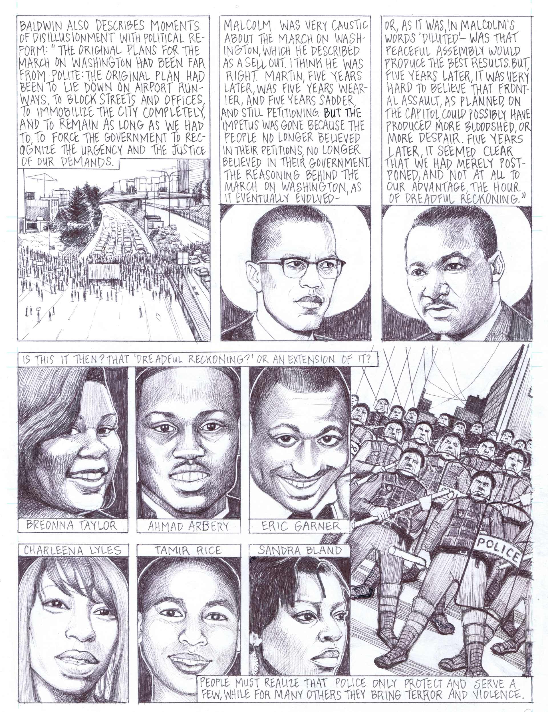 GS: I’m always working on and thinking about a lot of different projects, but drawing comics is my safe space, the medium that I always come back to. Without giving away too much, I’ll say that I’m not done with the Italian Renaissance, and I’m slowly planning and researching another graphic novel dealing with that world. I’m also working on what I refer to as ‘essay comics’– shorter segments, followed by notes, which could be put together into a book at some point. I just finished a ten-page ‘essay comic’ about the George Floyd protests, Black Lives Matter, and some of my favourite black American writers like James Baldwin and Lorraine Hansberry.