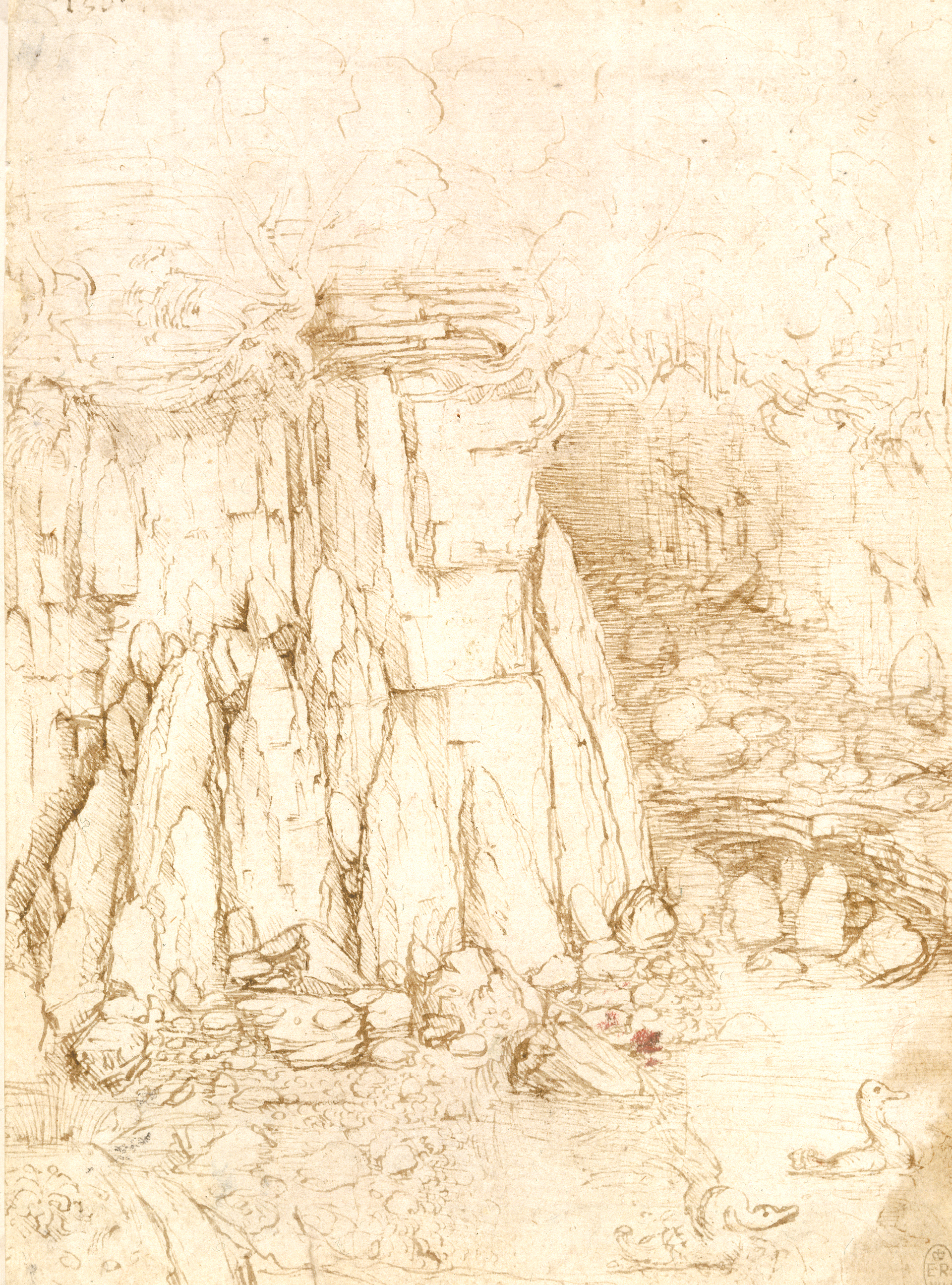 Leonardo had a lifelong fascination with the natural world. His surviving drawings include numerous observations of nature: swirling water, dramatic rock formations, trees and detailed plant studies. He studied the landscapes of the areas in which he lived in detail, and observed the effects of water and time on the natural environment.