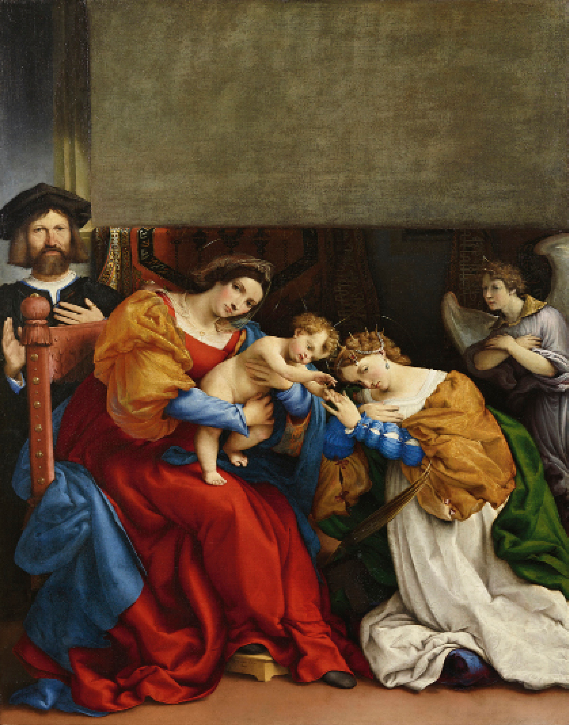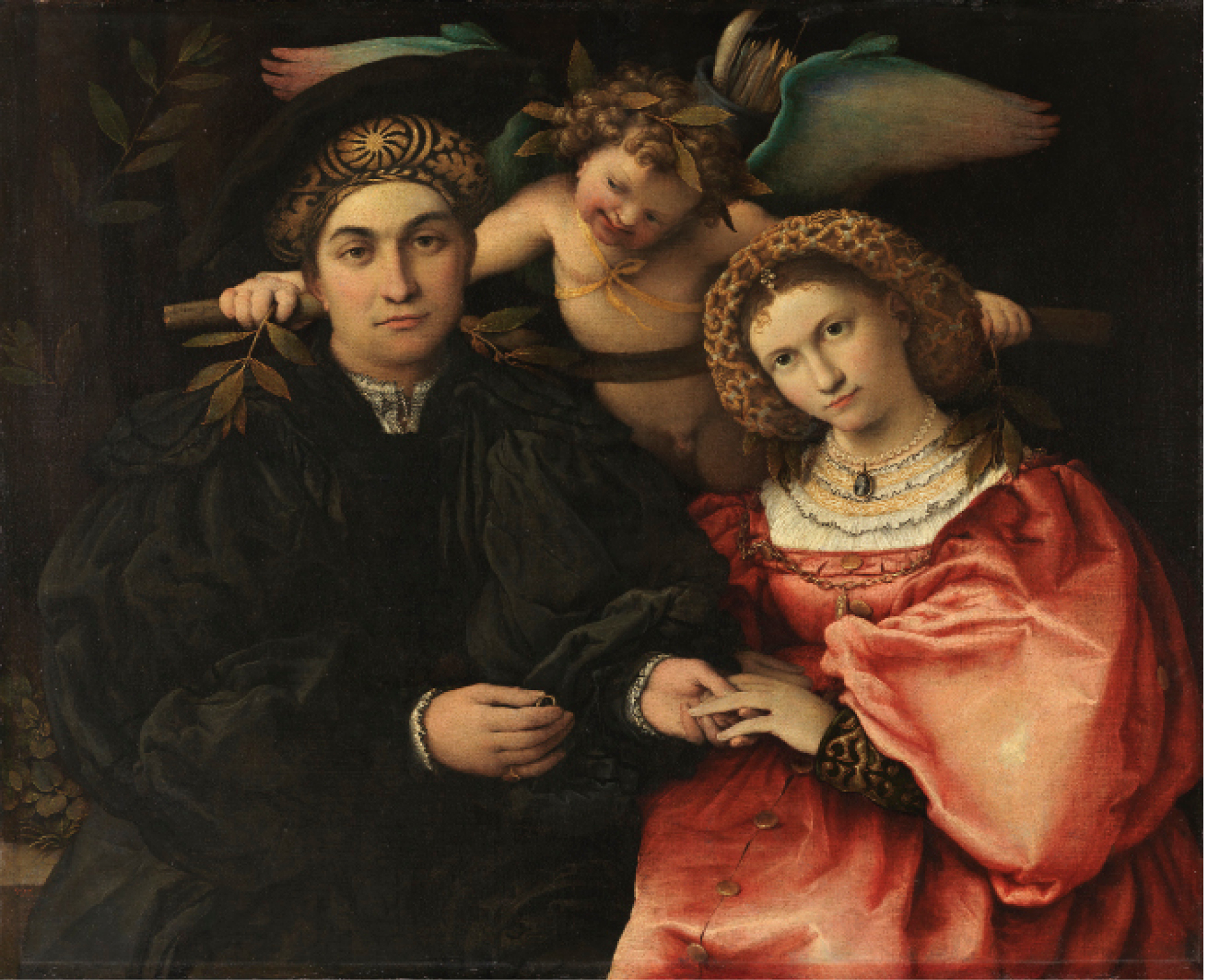 Lotto depicted men, women, and children in compositions rich in symbolism and imbued with great psychological depth. The prominent addition of objects which hinted at the social status, interests, and aspirations of his subjects added meaning to each work.