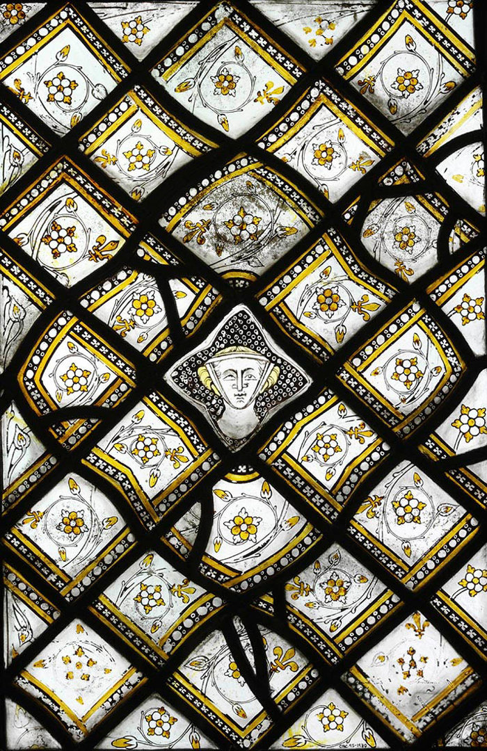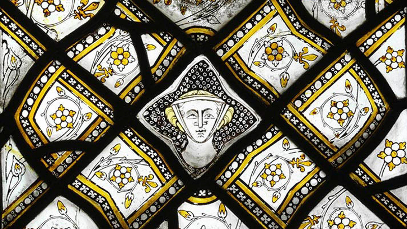'Stained Glass Panel with Quarries and a Female Head', about 1320–4