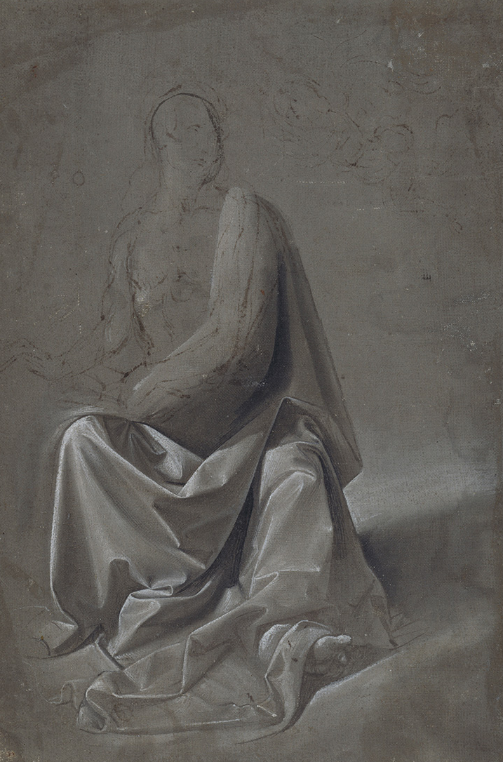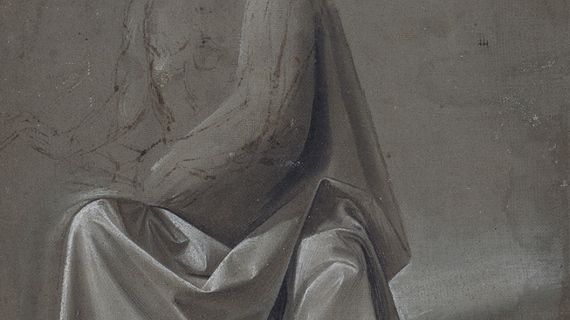 Domenico Ghirlandaio or workshop of Andrea del Verrocchio, 'Drapery Study' (possibly study for Saint Matthew and an Angel), about 1477