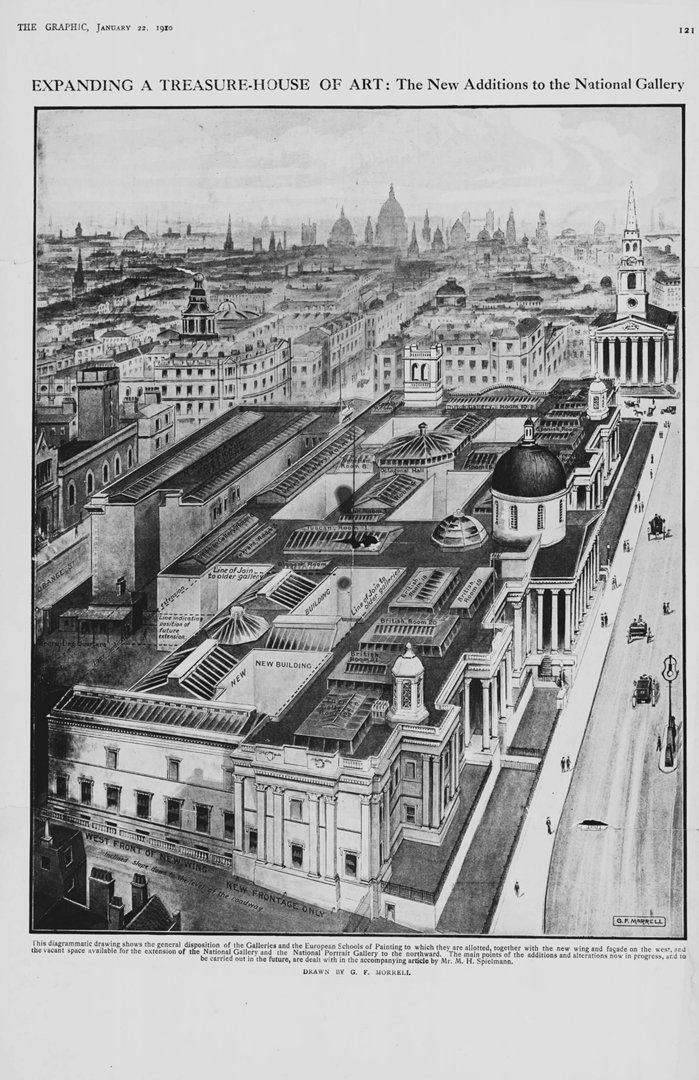 The National Gallery moved to Trafalgar Square in 1838, with a new building designed by architect William Wilkins. After only 28 years, the government decided to hold a competition to redesign the Gallery.