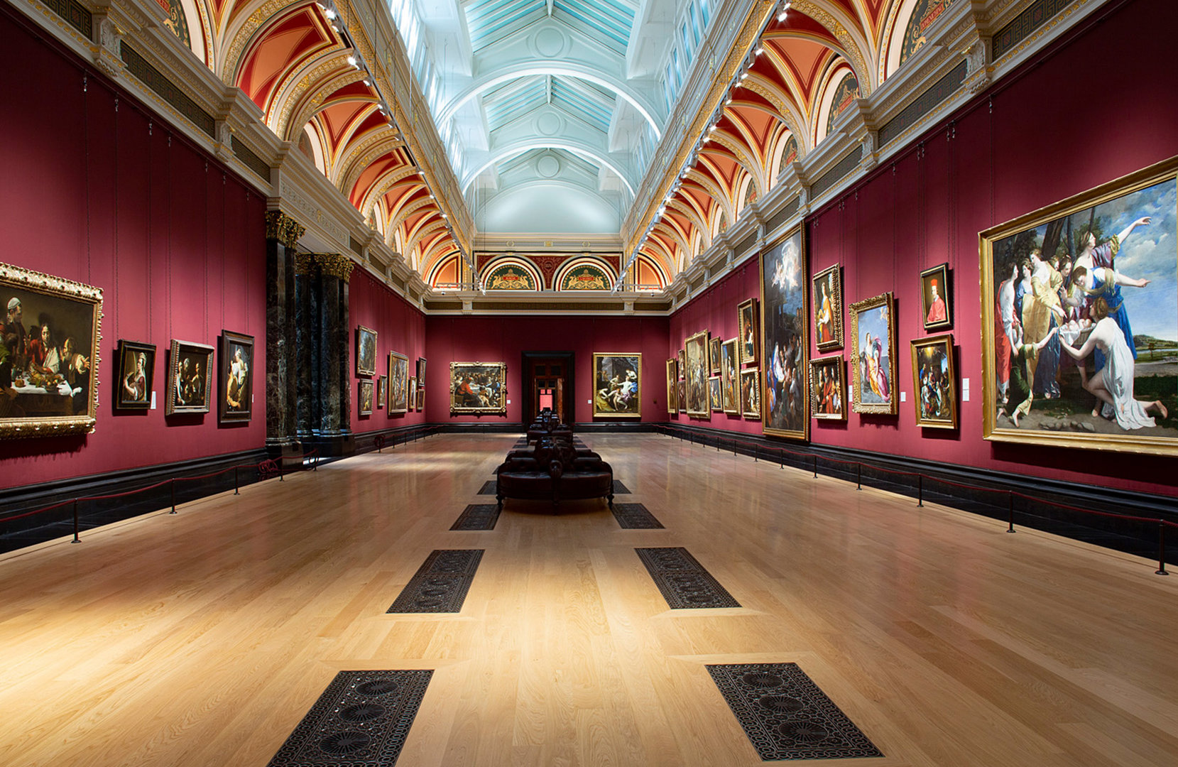 Room 32 is the largest of the Barry Rooms and is now called the Julia and Hans Rausing Room, after the benefactors who funded its extensive restoration in 2019. When it reopened to visitors, the Julia and Hans Rausing Room redisplayed the collection of 17th-century Italian pictures.