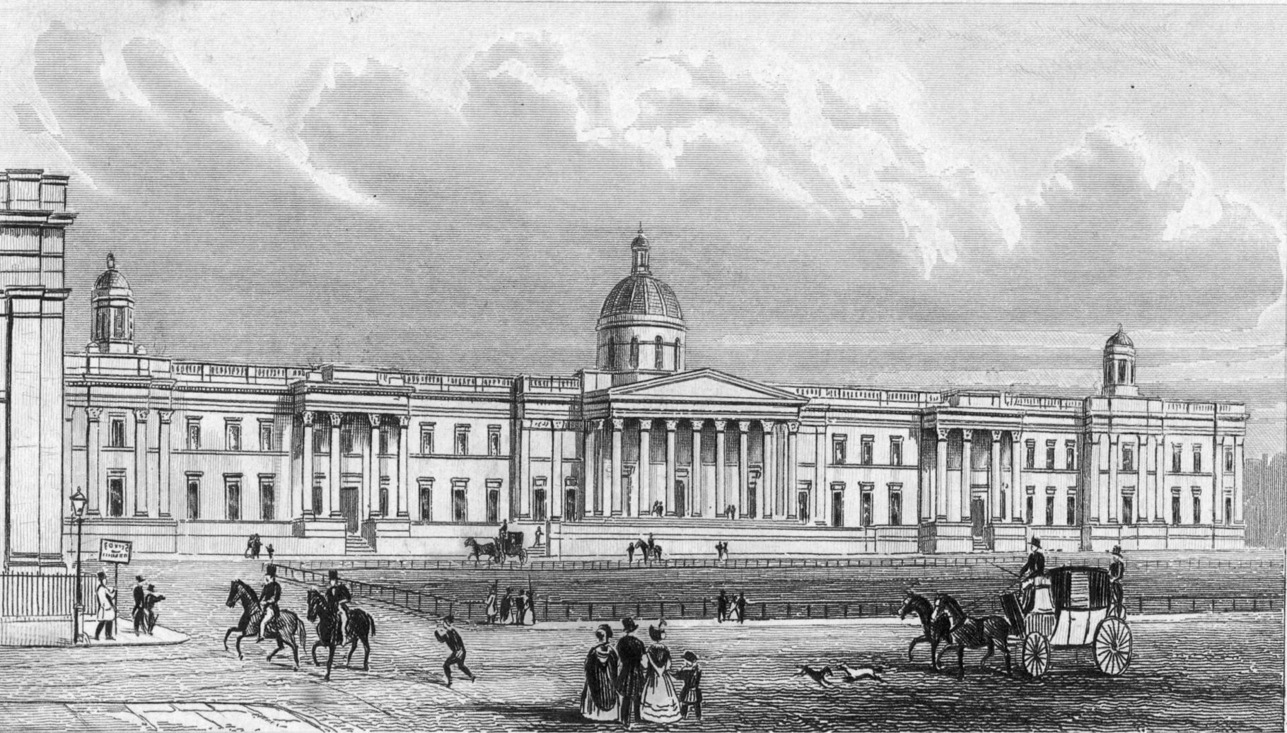 Did you know that the building many of us know and love in Trafalgar Square hasn’t always been the Gallery’s home? When we first opened in 1824, our paintings were displayed in a London townhouse at 100 Pall Mall. As the Gallery became more popular and the art collection grew, it was clear that it needed a larger space. In 1831, Trafalgar Square was chosen due to its central London location. However, the site did not always look like it does today.