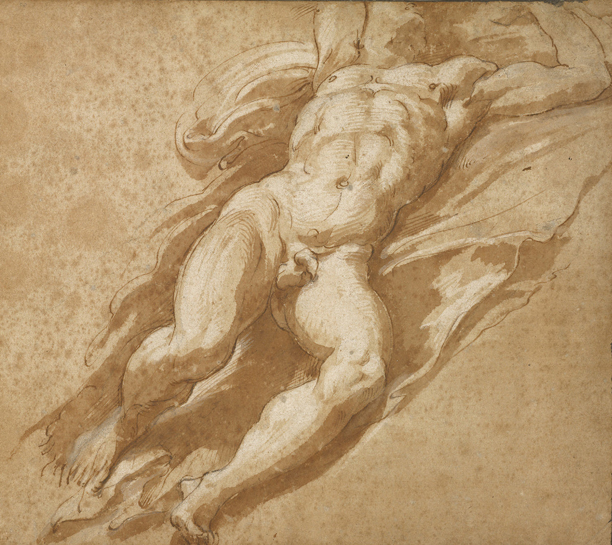 Parmigianino made many drawings to work out his final composition. They range from velvety chalk studies to swirling pen and ink sketches. We reunite a variety of them with the painting for the first time.