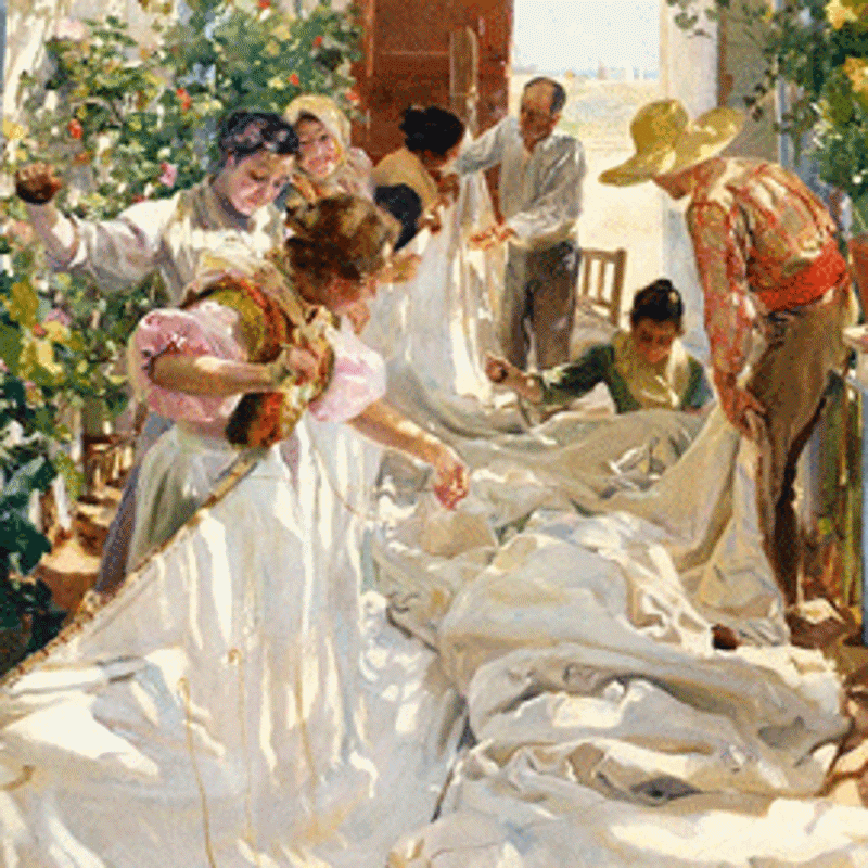 We follow Sorolla’s career as a new chapter opens up for him in New York. Spotted by New Yorker Archer Huntington, Sorolla travelled to the US where he was commissioned to paint a series of monumental canvasses that depict the regional costumes, landscape, and characters of his native Spain. His huge 'Vision of Spain' remains in its home, the Hispanic Society of New York, but we can get a flavour of the works via one of the many preparatory studies that he made. In addition we see the larger than lifesize 'Bride from Lagartera' and 'Types from Salamanca' that encapsulate Sorolla’s fascination with regional costume and culture and evoke the New York panels.