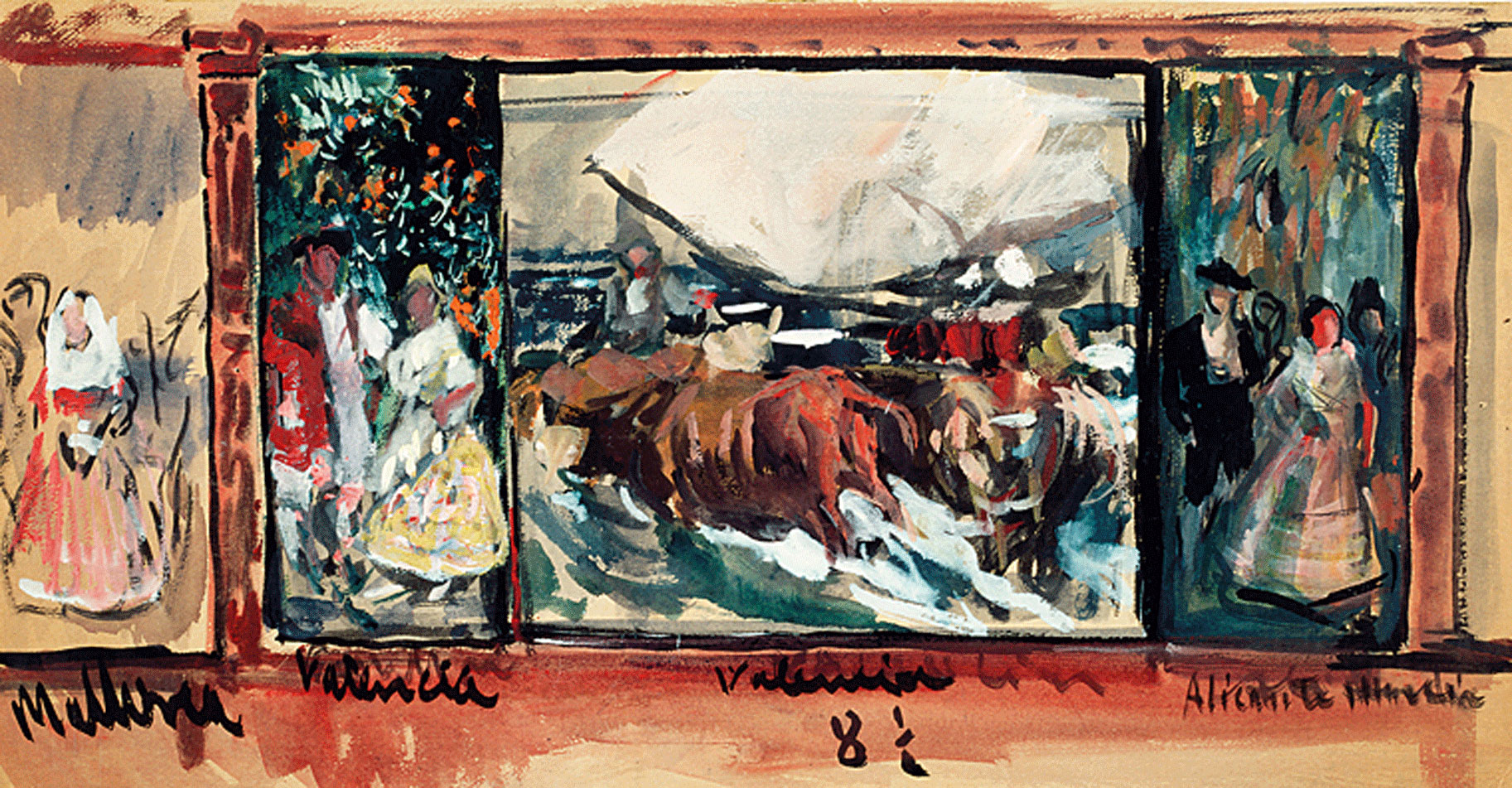 Sadly Sorolla never saw his epic mural cycle installed in New York as he suffered a stroke while painting in the garden, in June 1920. When he died, three years later, he was buried like a state hero. His body was transported in a cortège by train to Valencia, where it was greeted by thousands and there, in his hometown, he was buried in full state pomp.