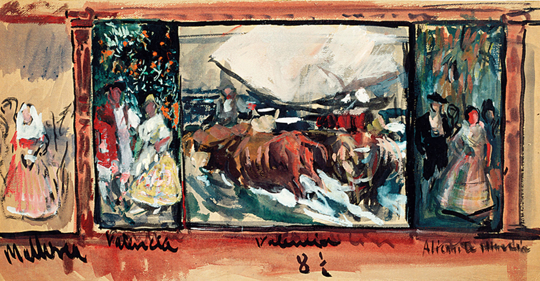 In 1912, Sorolla received his most ambitious commission to date, from the Hispanic Society of America, to paint a series of canvases to decorate their library. The result, ‘Vision of Spain’, became an all-consuming project for several years. When completed and installed many years later, it would comprise 14 huge canvases (several the size of cinema screens), depicting the regional costumes and customs of the major provinces of Spain; each visually intense and richly detailed canvas evoked the all-enveloping Spanish light and atmosphere.