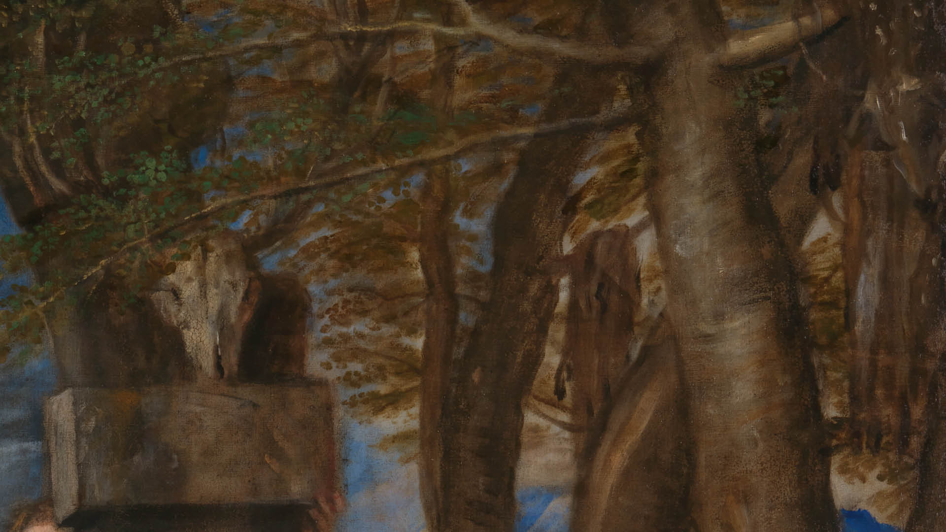 The telling reaction on the nymphs' faces and Diana's dreadful glare indicate that he has - unwittingly - infuriated her. The consequence is fatal. Titian hints at Actaeon's punishment by including a stag being chased by Diana on the skyline. Diana transforms Actaeon into a stag which is savaged by his own hounds.