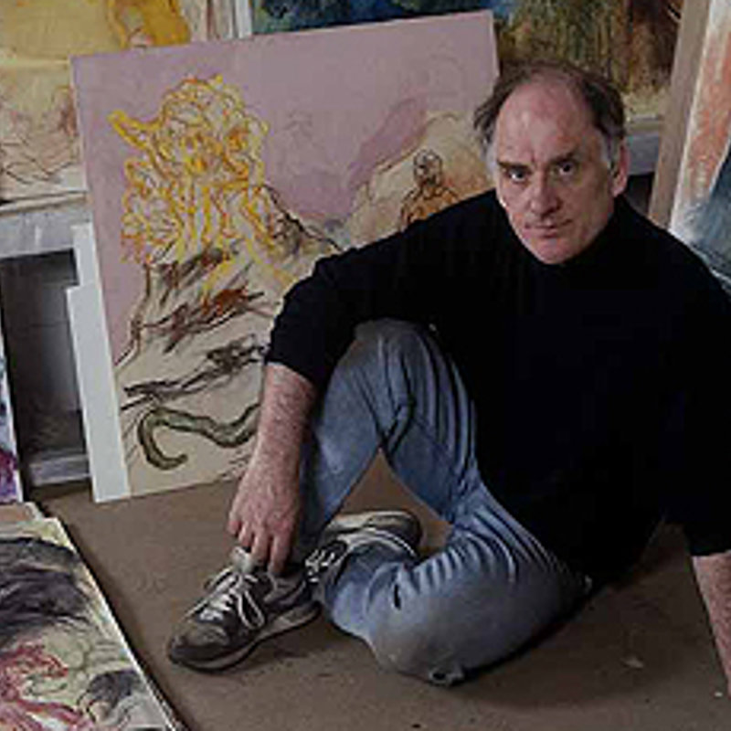 Ken Kiff RA (b.1935, London, UK – d.2001, London, UK) was an Associate Artist for 18 months, between November 1991 and April 1993. Kiff was known for vibrant paintings and prints that sprung directly from his imagination. His pictures evoke contradictory emotions in the viewer. They can be colourful and joyous, but are also sometimes comic, grotesque, and macabre. Above all, they are driven by the artist’s fascination with colour and a highly personal iconography.