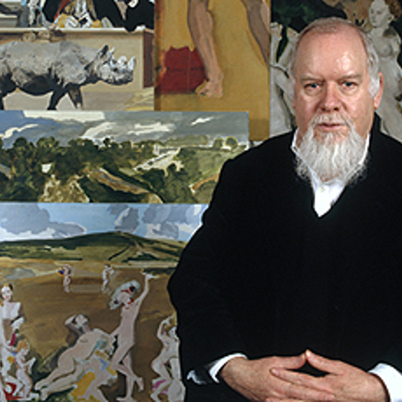 Sir Peter Blake RA (b.1932, Dartford, UK) was Associate Artist at the National Gallery for over two-years, between late summer of 1994 and 1996. Blake’s work blurs the boundaries between high and low art. He is interested in mixing cultures, appropriating imagery from an enormous range of sources including pop culture, comic books, advertising imagery and art history. The results are eclectic, comic and sometimes bizarre. He has worked in a variety of disciplines, including painting, sculpture, printmaking, and collage.