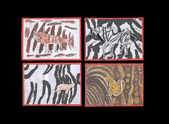 The tiger's stripes interested the children so much that they decided to research different animal patterns. They each drew an animal, painted its pattern onto a background and then attached their drawings. This gave their artworks a 3D effect.
