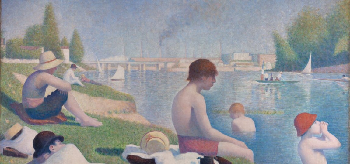 It’s a simple picture of men and boys relaxing by the River Seine and yet there is something unsettling about this scene. The people seem both present and absent - there and not there.