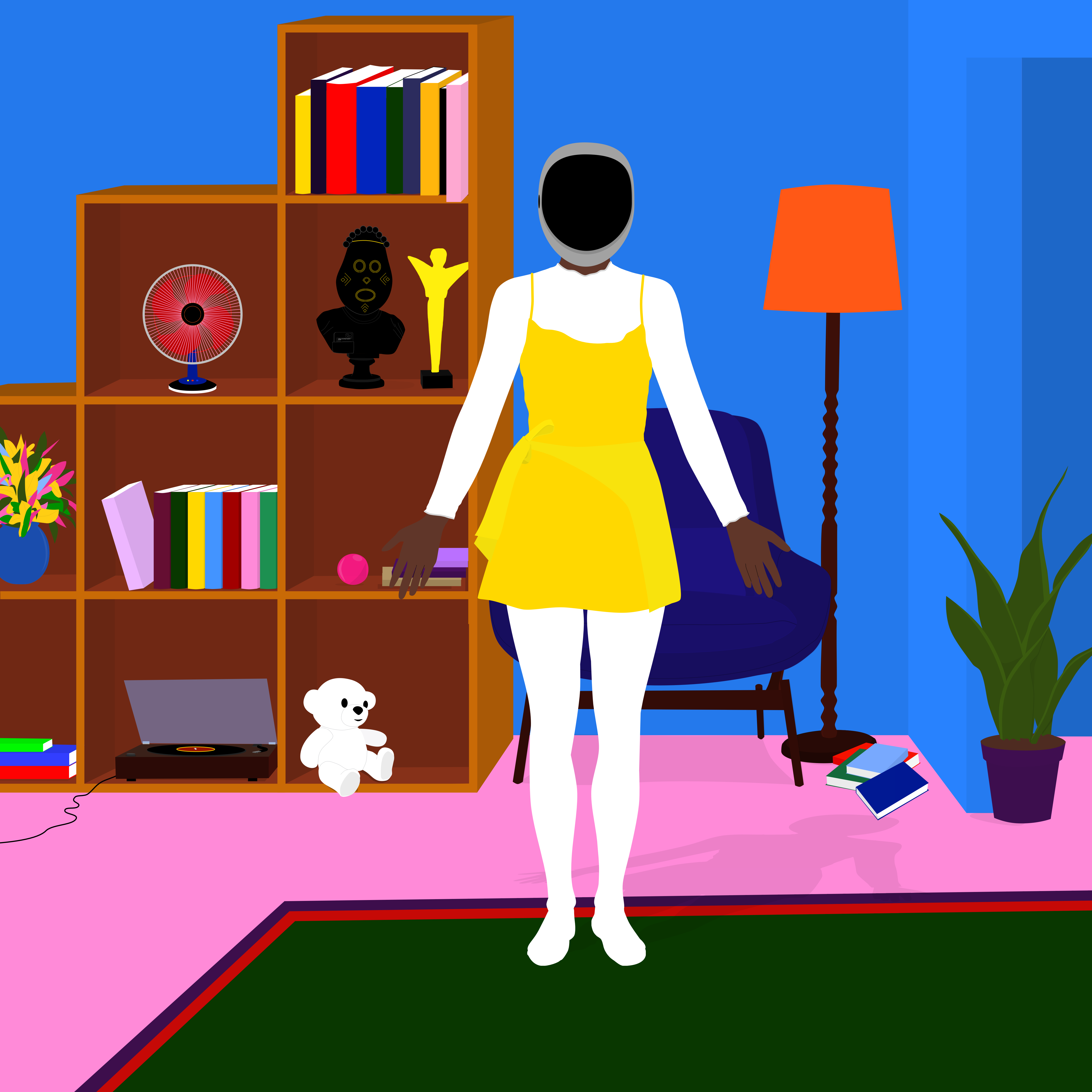 In his unique signature style and fascination with interior spaces, Osadebe has generated a virtual room that draws inspiration from the linear perspective of Renaissance paintings, akin to the style of Paula Rego's Crivelli’s Garden (1990‐1). The objects occupying the space also signal the influence of Rego's historically rooted work, as we find symbolic relationships through symbols of statues, references to childhood, performance, and mythology.