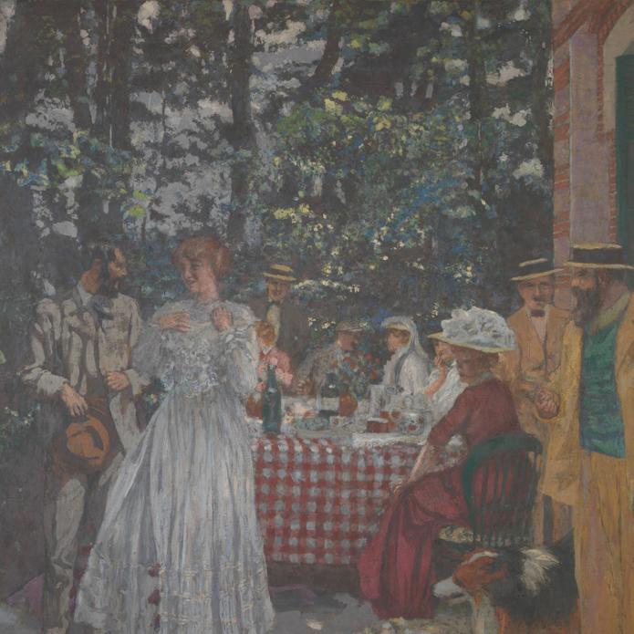 La Terrasse at Vasouy, The Garden and La Terrasse at Vasouy, The Lunch once formed a single decorative panel, commissioned by the dramatist Jean Schopfer in 1901 and installed in his Paris apartment on the Avenue Victor Hugo later that year. They show Jean and his wife at the time, Alice, relaxing with friends in a Normandy summer home.