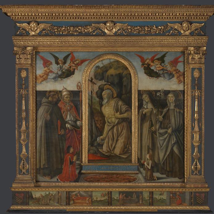 The S. Gerolamo Altarpiece, named after the saint prominently depicted at its centre and the church where it originally stood, is among the most important works of the Florentine painter Francesco Botticini. The artist was an exact contemporary of Sandro Botticelli, with whom he may have trained in the workshop of Andrea del Verrocchio.