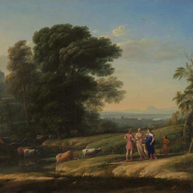 The story is from Ovid's, 'Metamorphoses' (7: 701-14). A 15th-century Italian play substituted a happier ending in which Diana resurrects Procris and reunites her with Cephalus, which was the inspiration for Claude's painting 'Landscape with Cephalus and Procris reunited by Diana'.