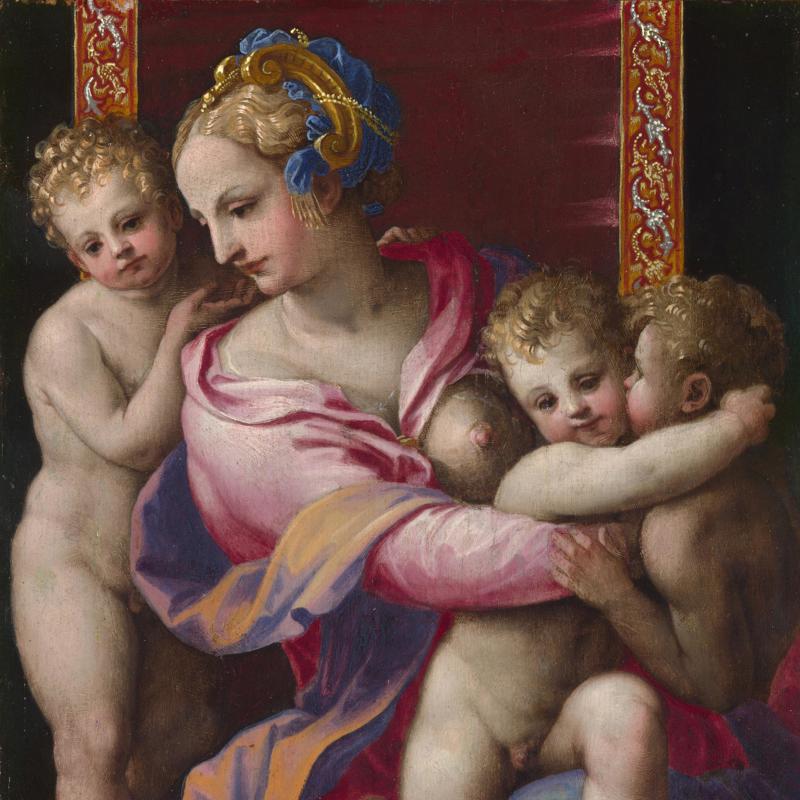 The personification of Charity has been depicted in a number of different ways. The image of a woman nurturing several children was first developed in Italy in the 14th century; it became the one most commonly used in later art.